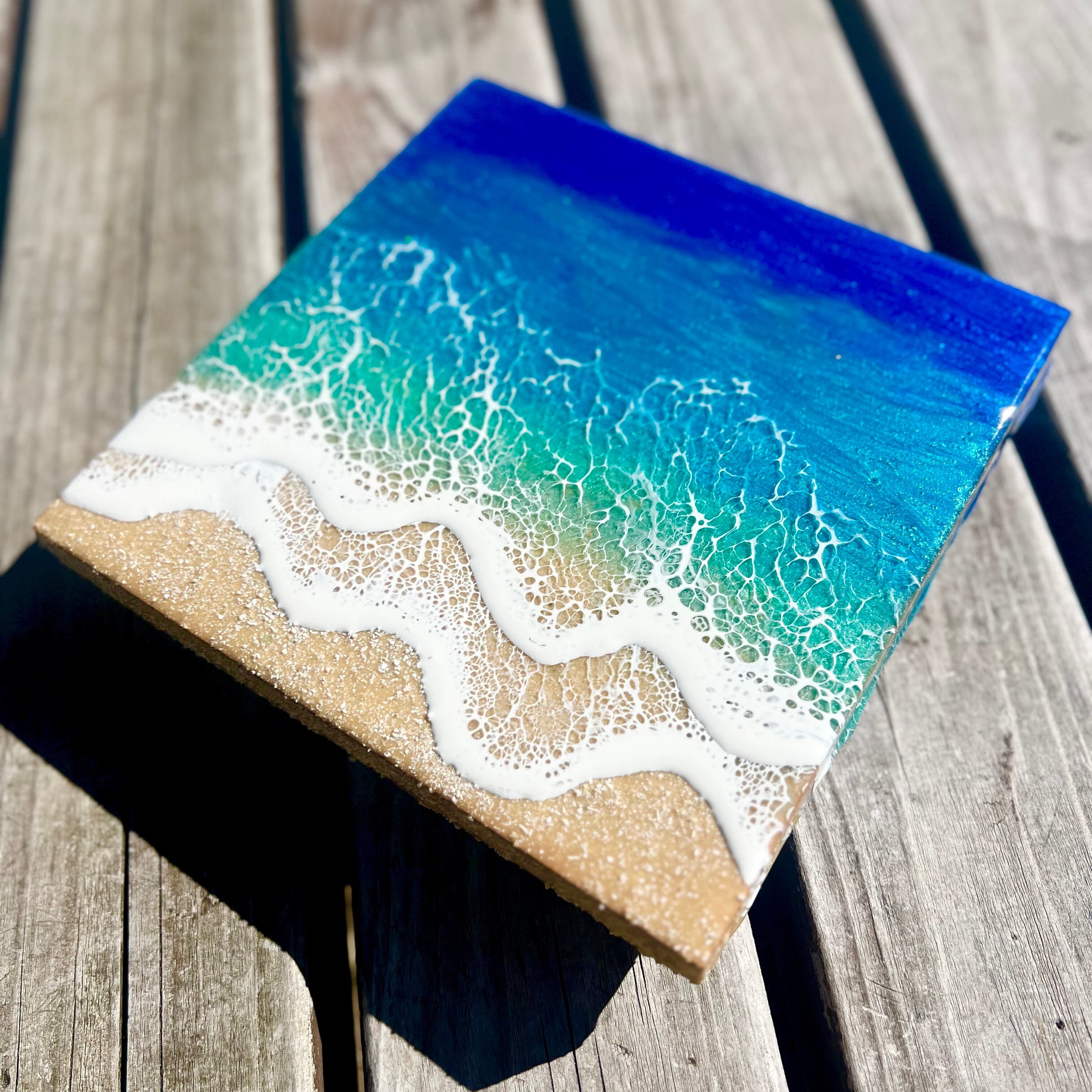 深い青からエメラルドグリーンへと変化するグラデーションと、リアルな白波の表現が、見るたびに癒しを与えてくれます。