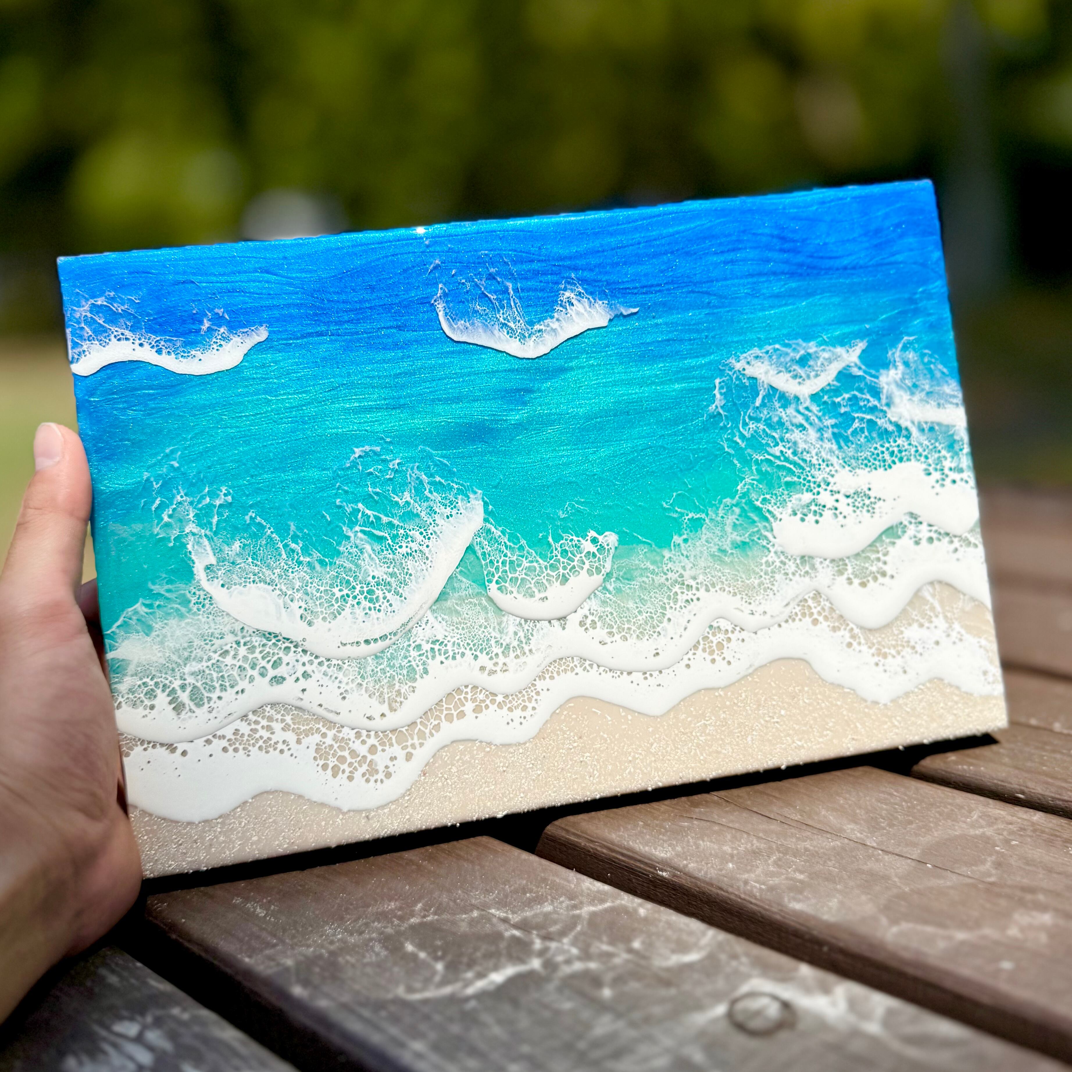 本物の砂を使用した下地に加え、2層の波と小さな波を加え、よりリアルな海へと完成しました。