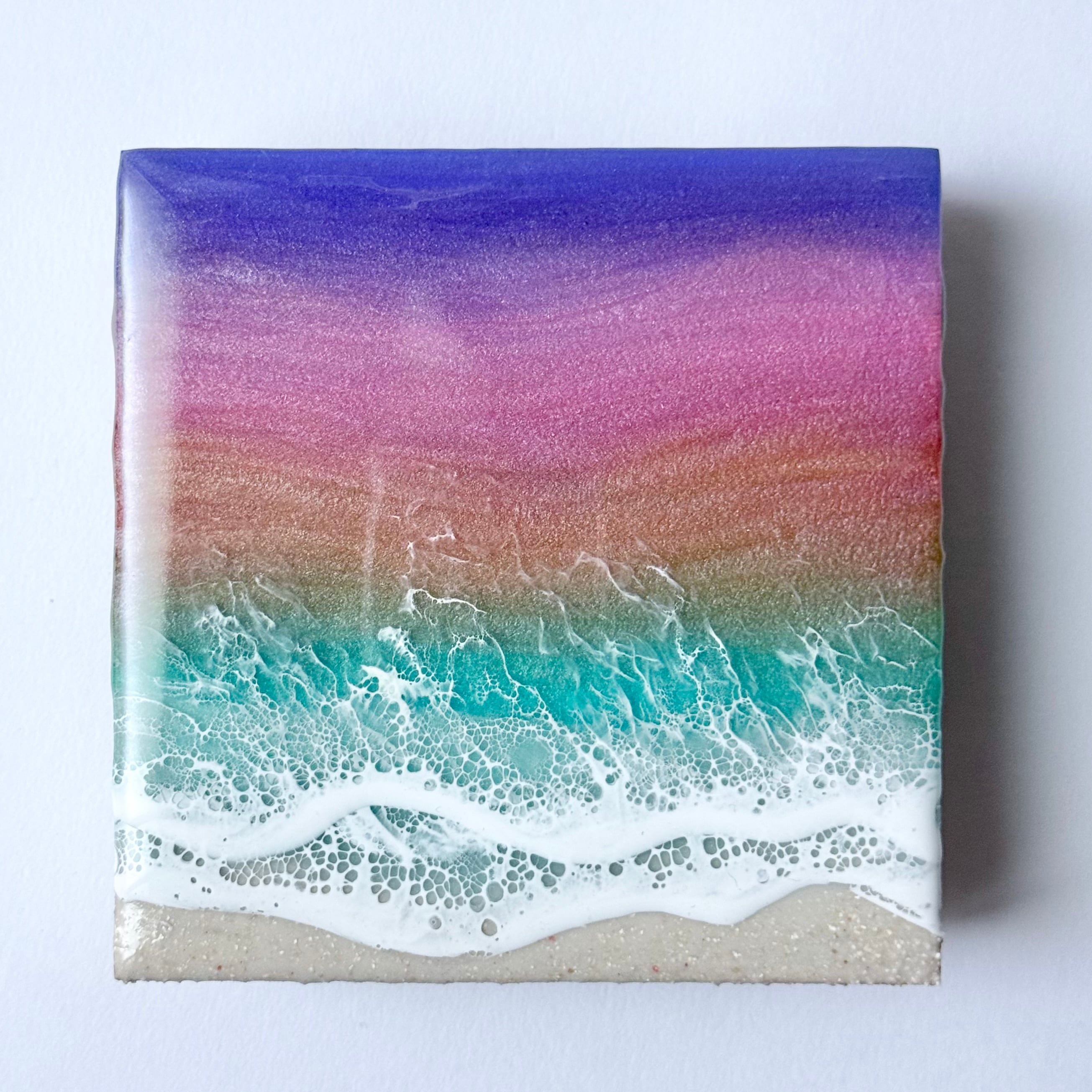 12cmサイズの海アートには本物の砂を下地に使用し、グラデーションを描くためにカラーを2〜3層重ねております。