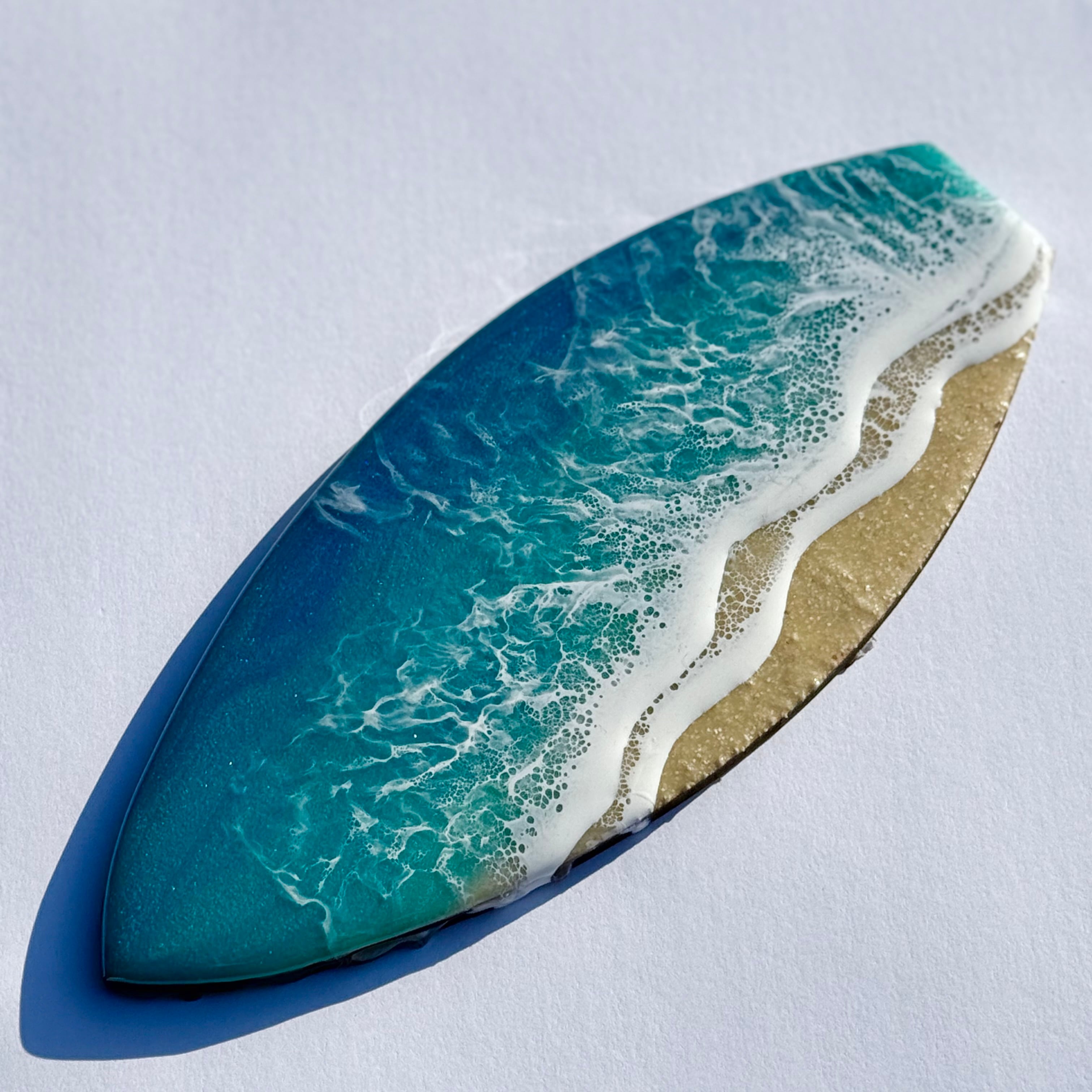 サーフボード型のアートボードに波を描いた作品となります。