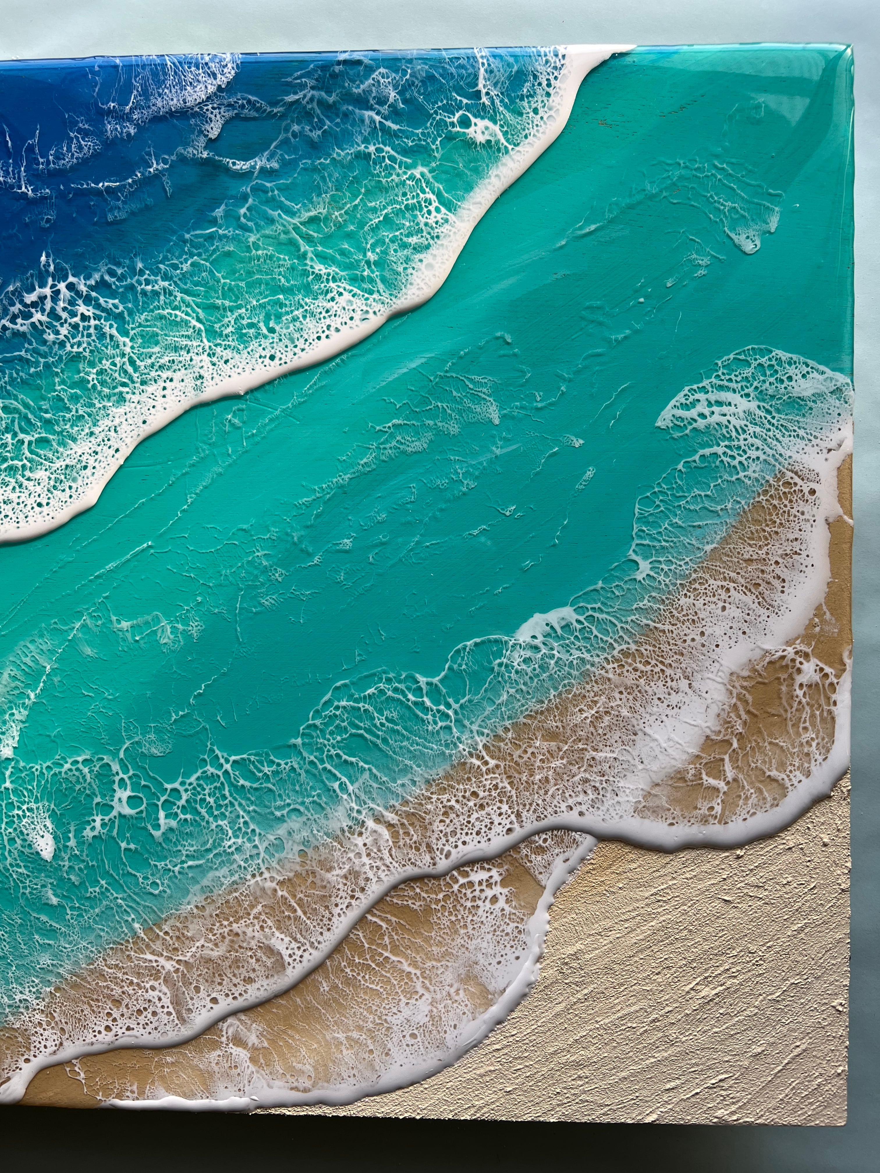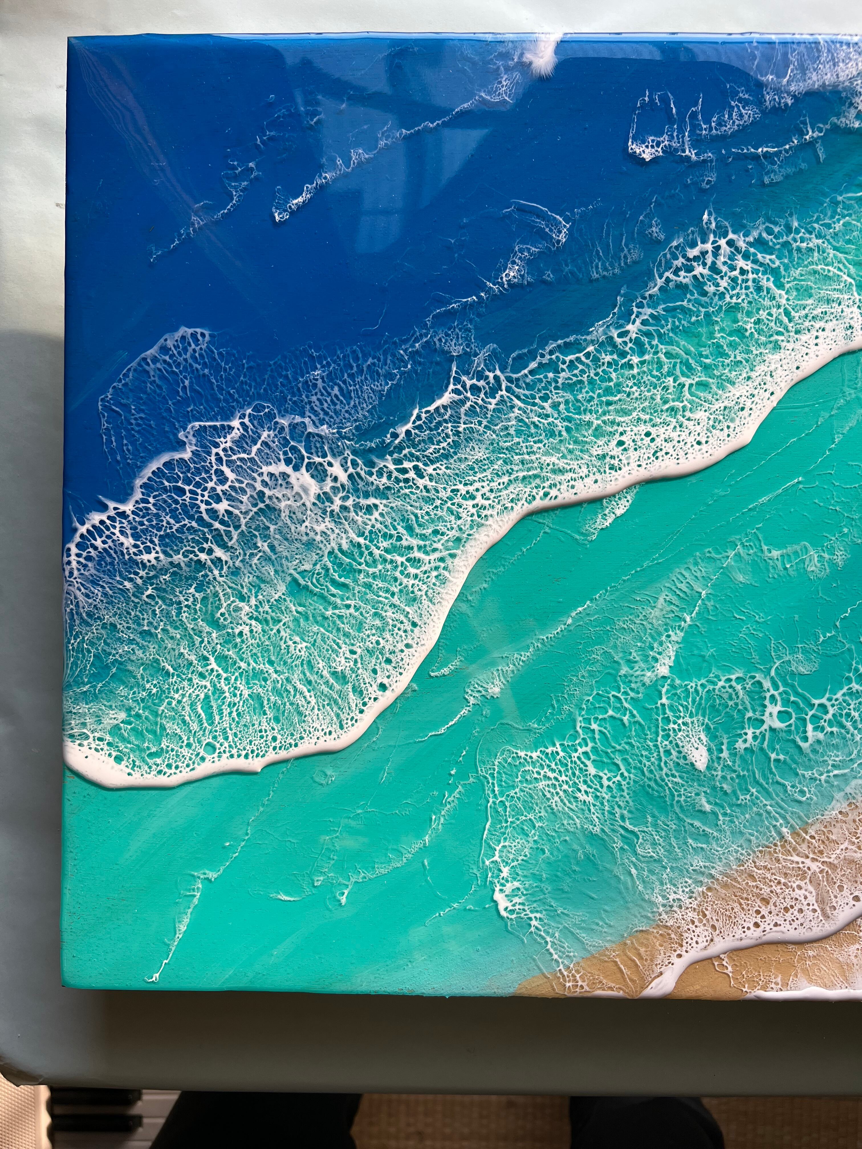 エメラルドグリーンとブルーの2色で宮古島の海を描きました!最高の作品です。