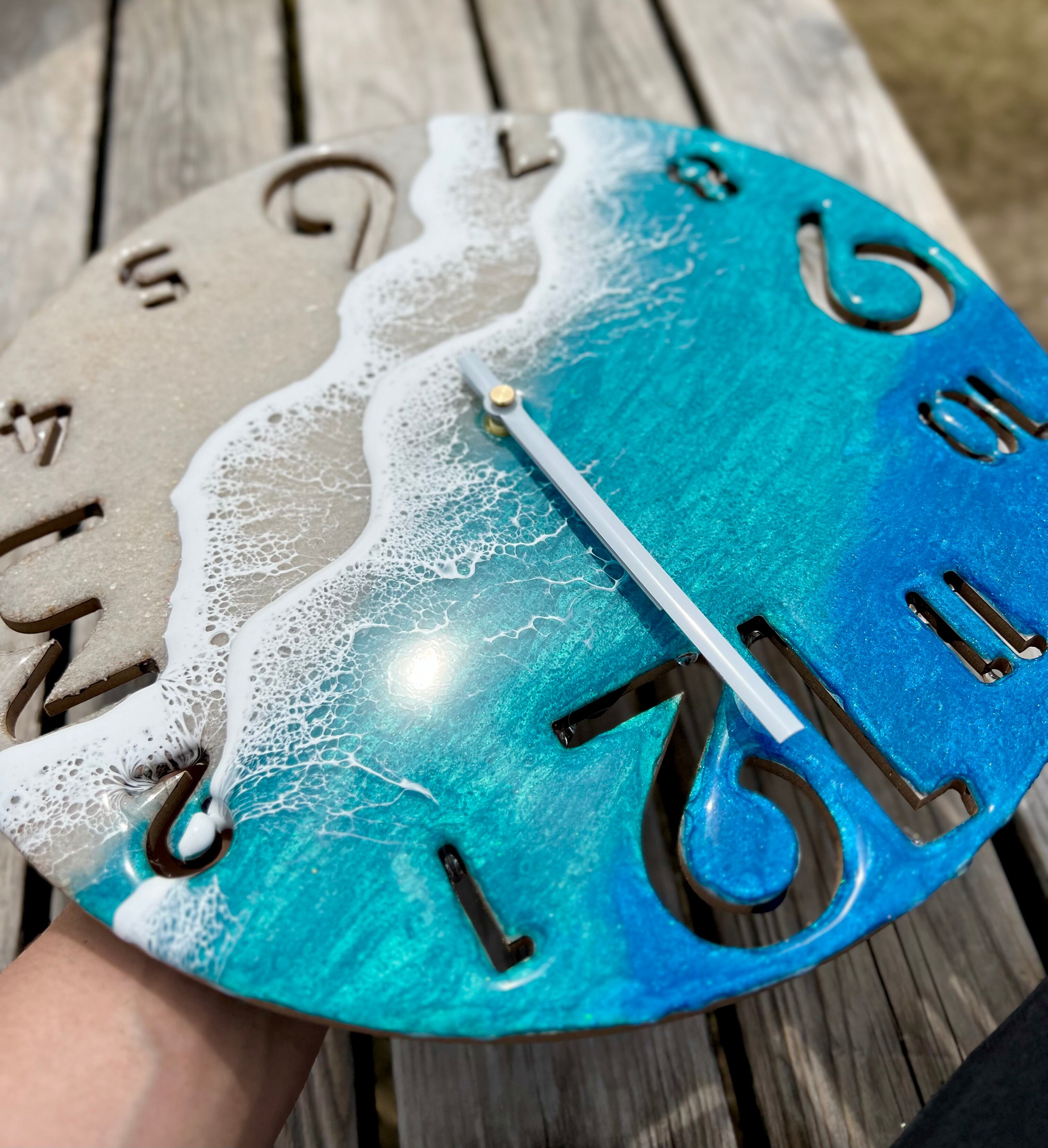 海レジンアート時計09 時間を海と〜斜めの2wave〜