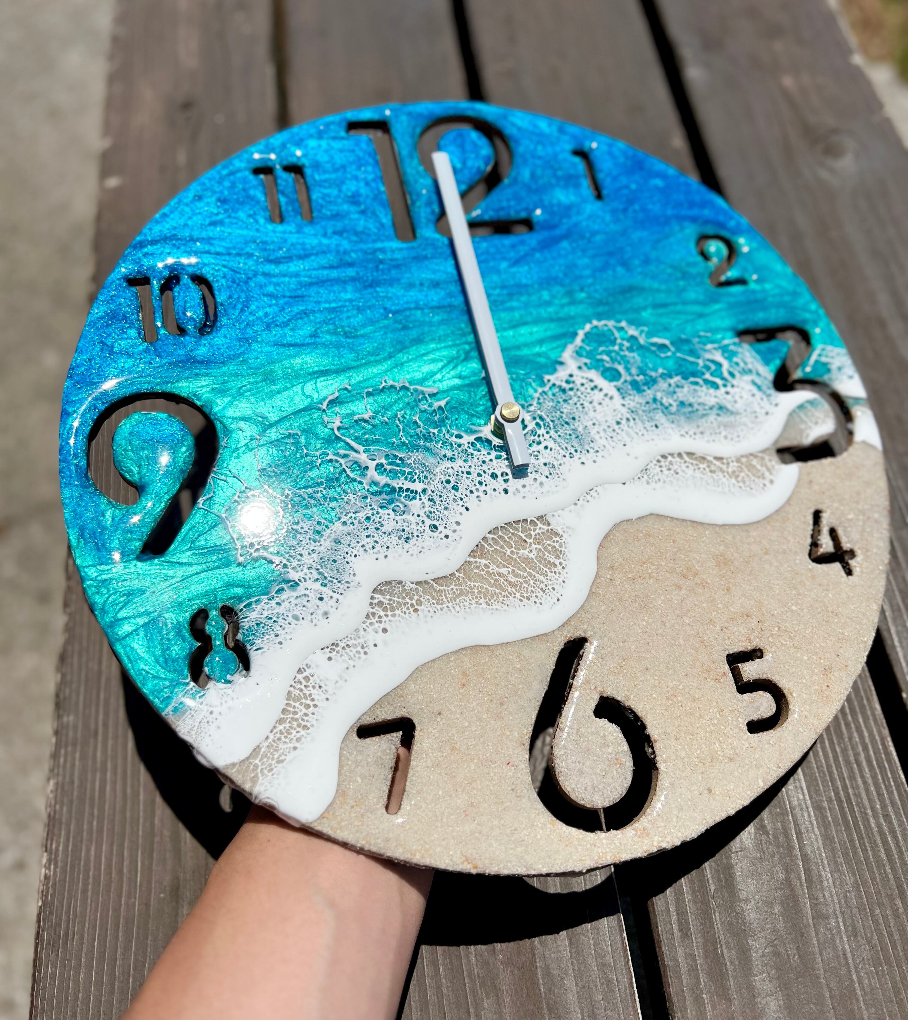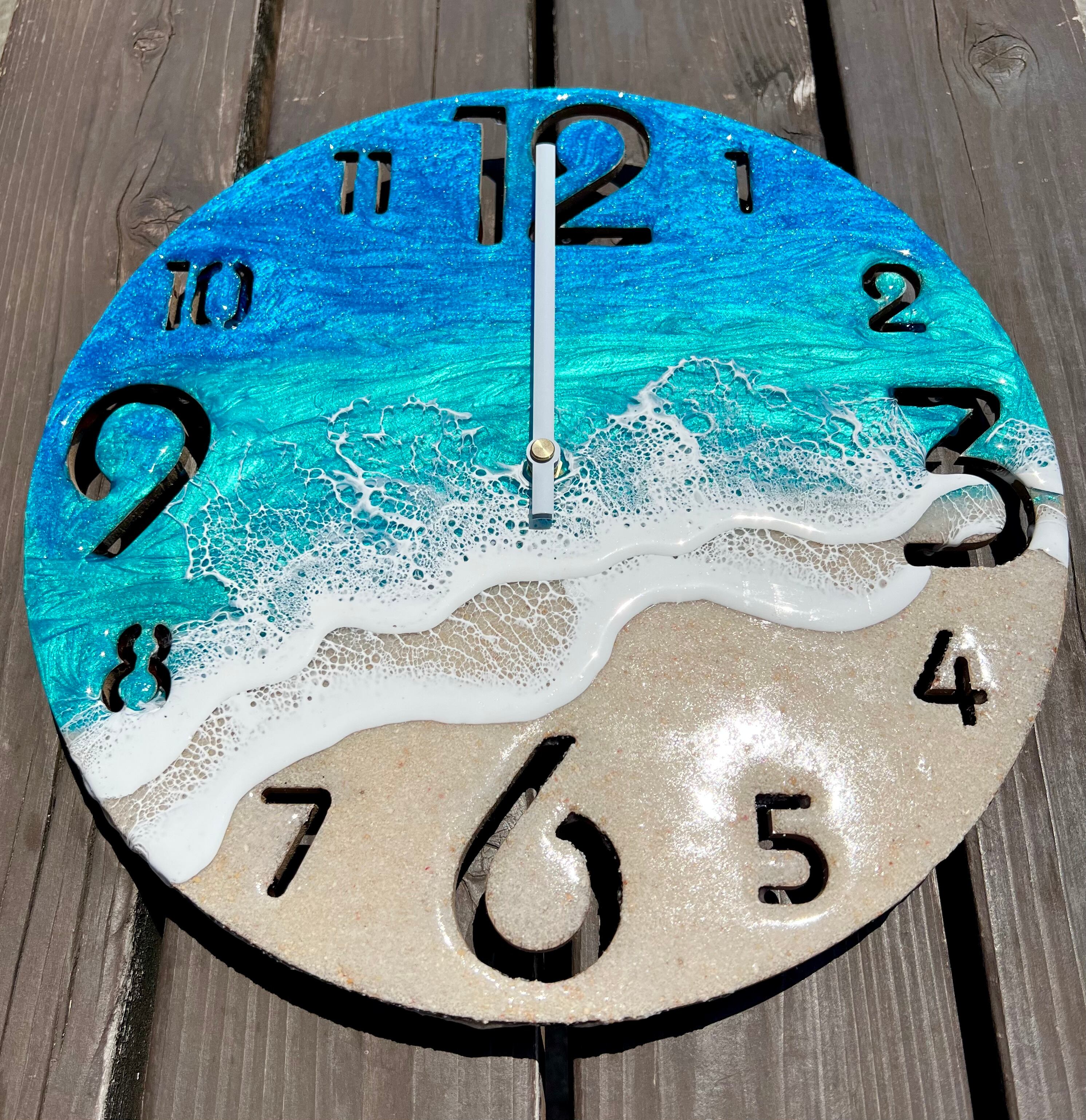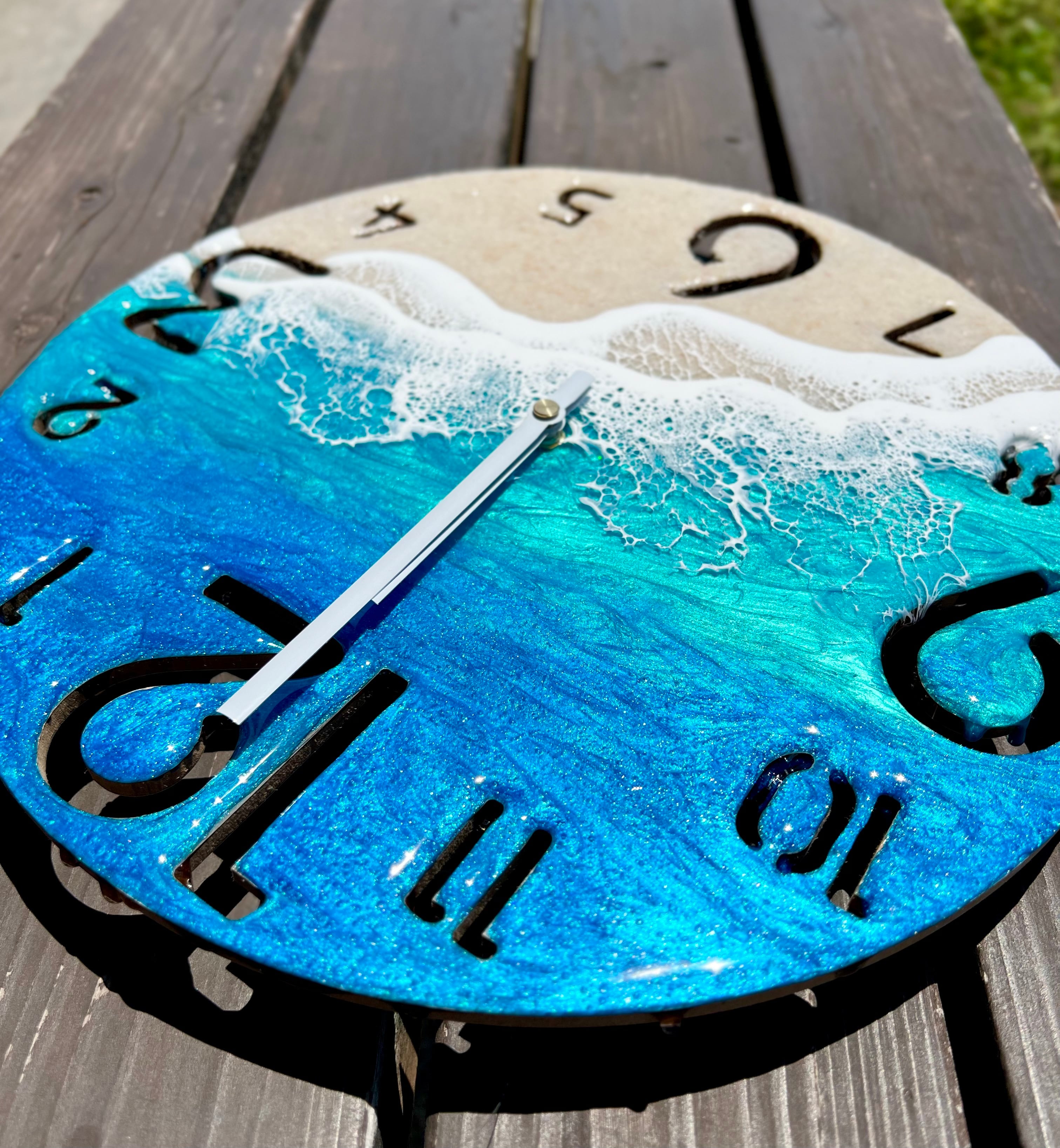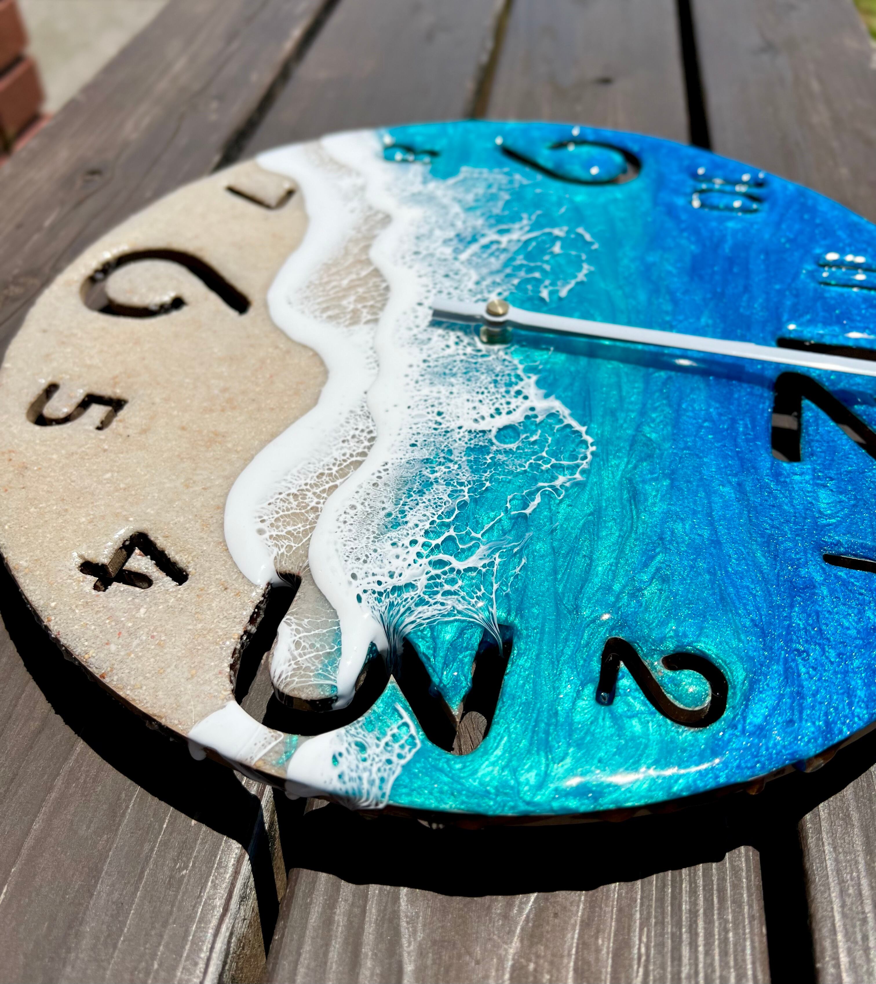 海レジンアート時計12 時間を海と〜斜めの2wave〜
