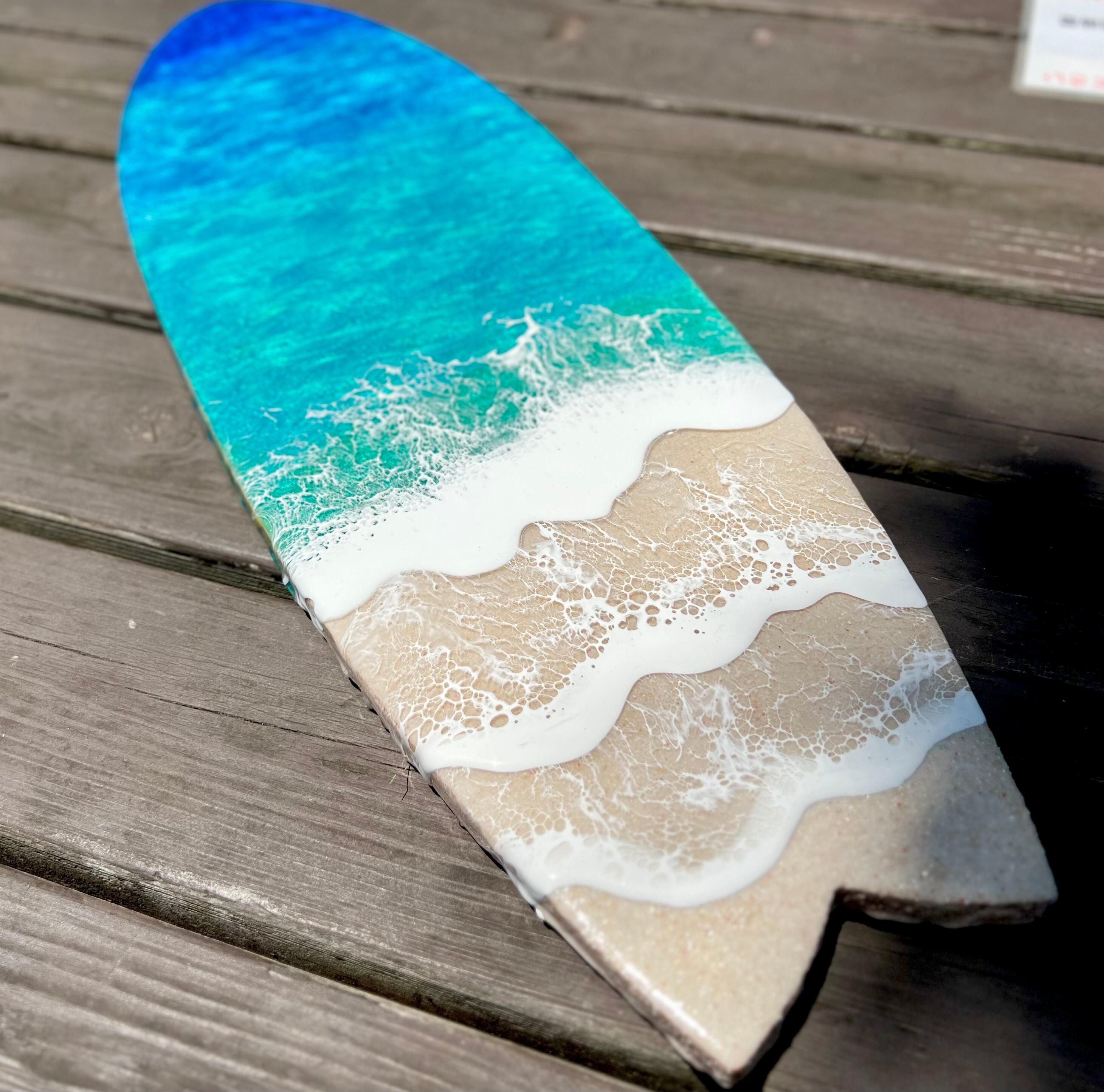 サーフボード型のアートボードに海を流しました。