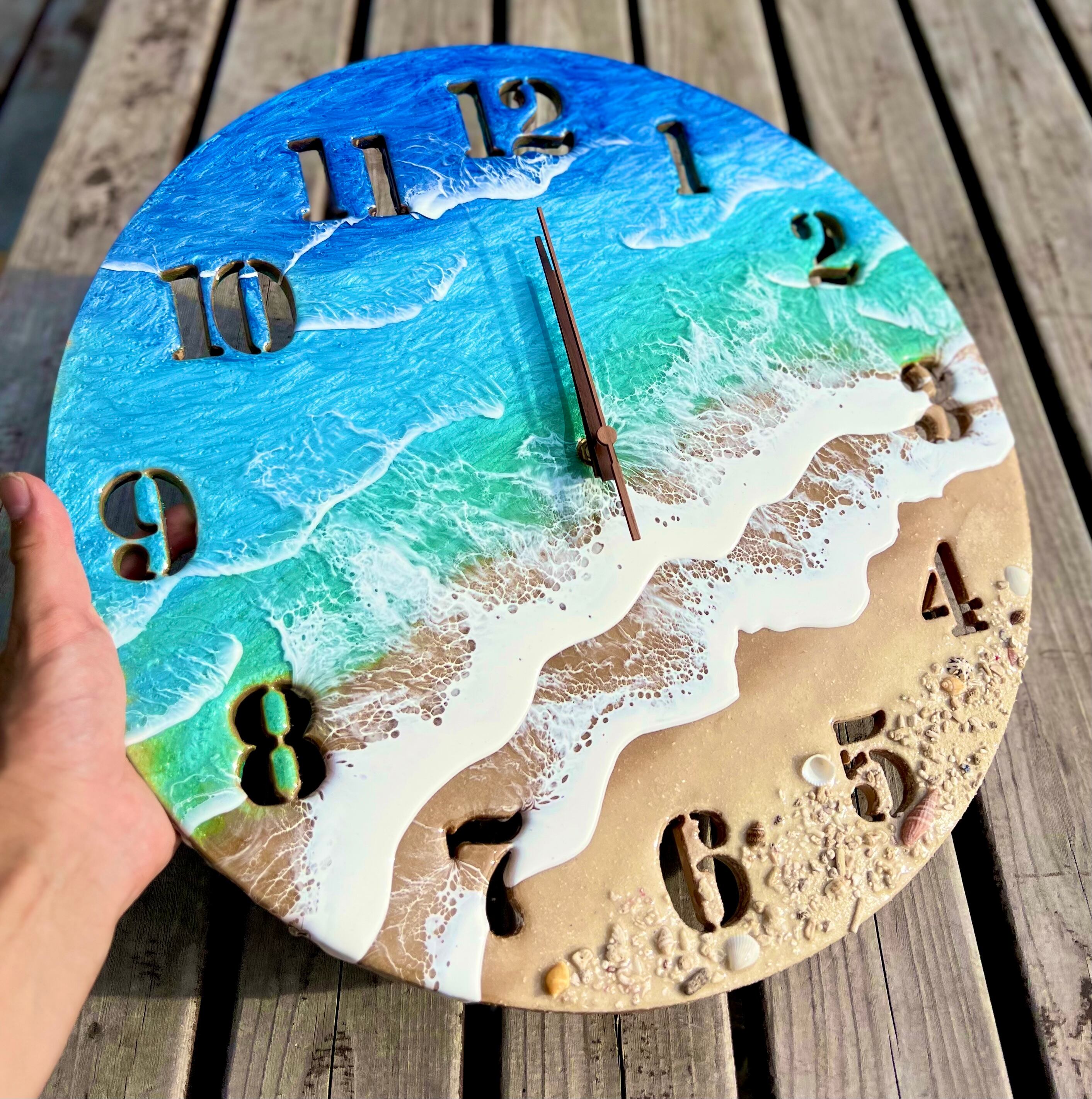 【黄変ありの為大特価】【44cm】海レジンアート時計25 時間を海と〜豪快に海を感じる〜