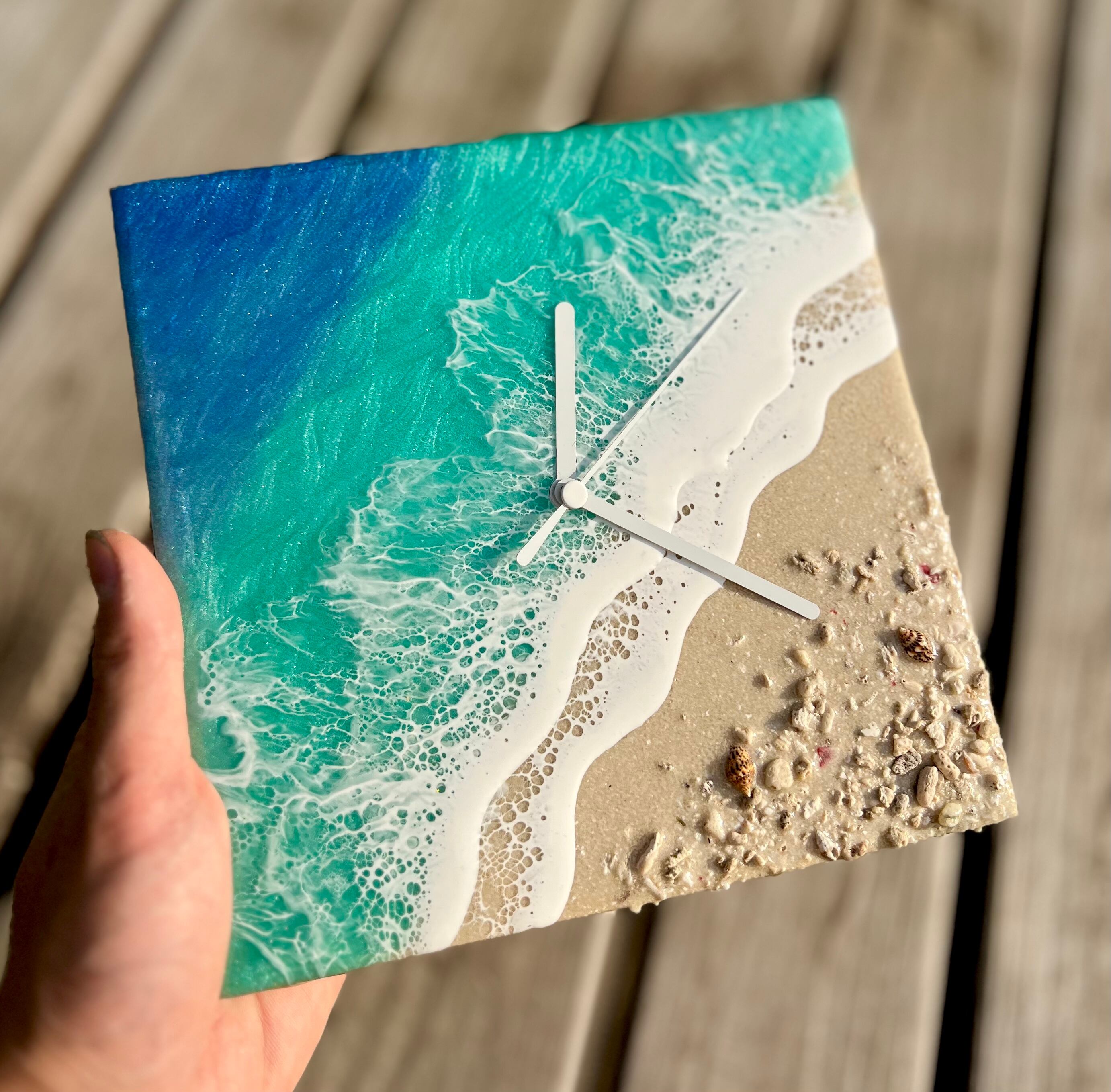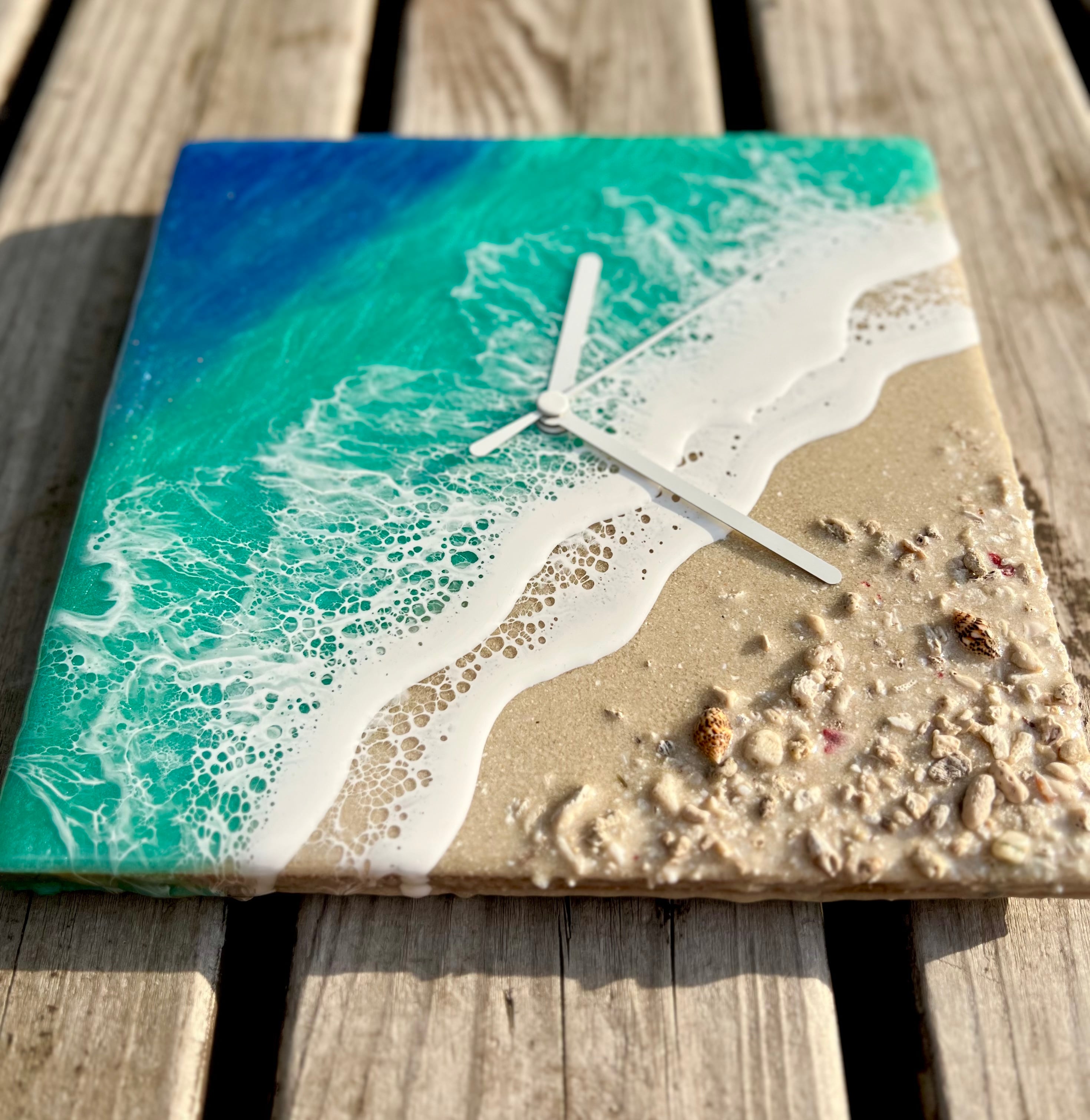 海レジンアート時計33 時間を海と〜 海の欠片(オキナワグリーン)〜
