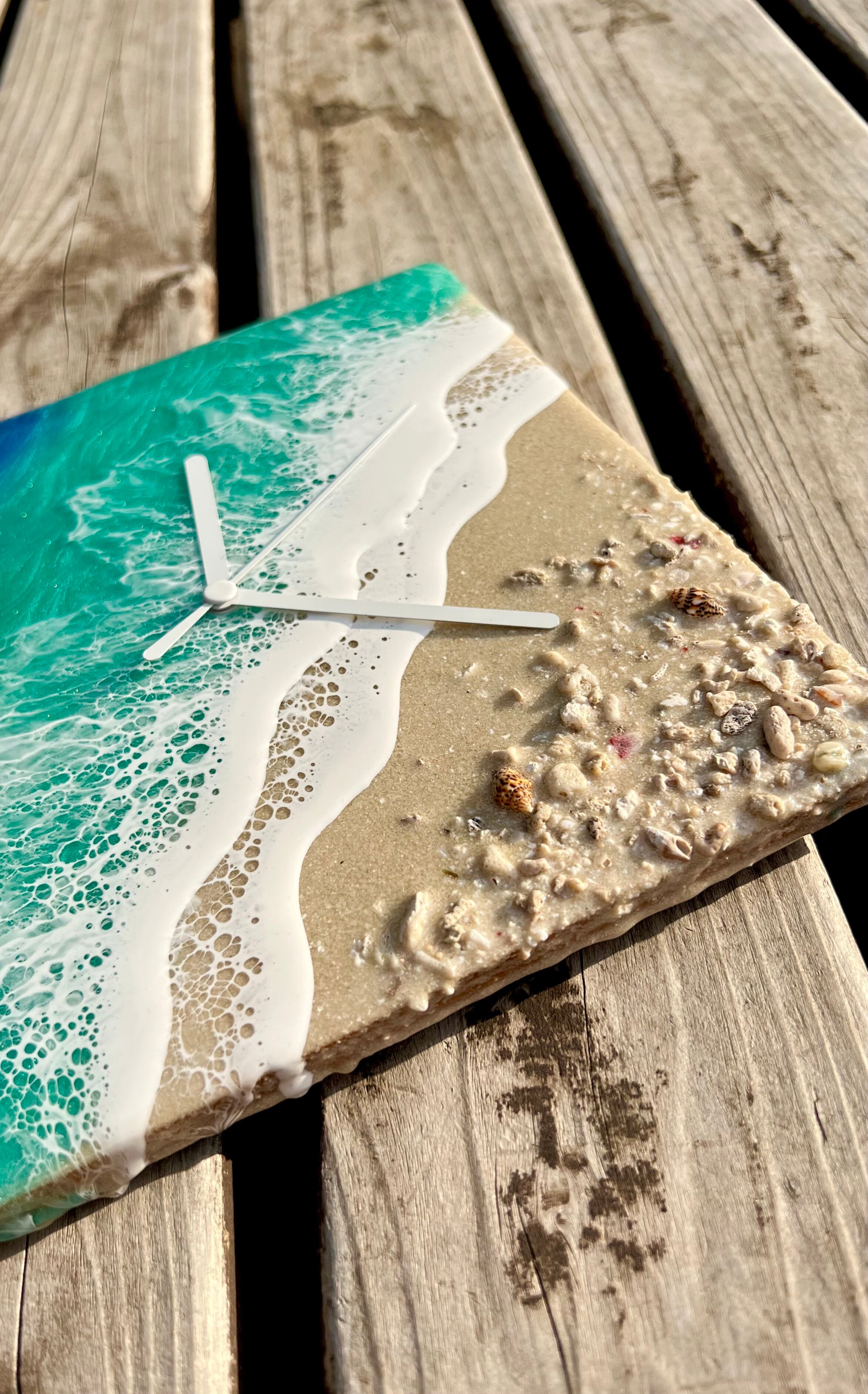 珊瑚の砂、石そして貝殻を下地に使用しよりリアルな海を感じられる海の時計。