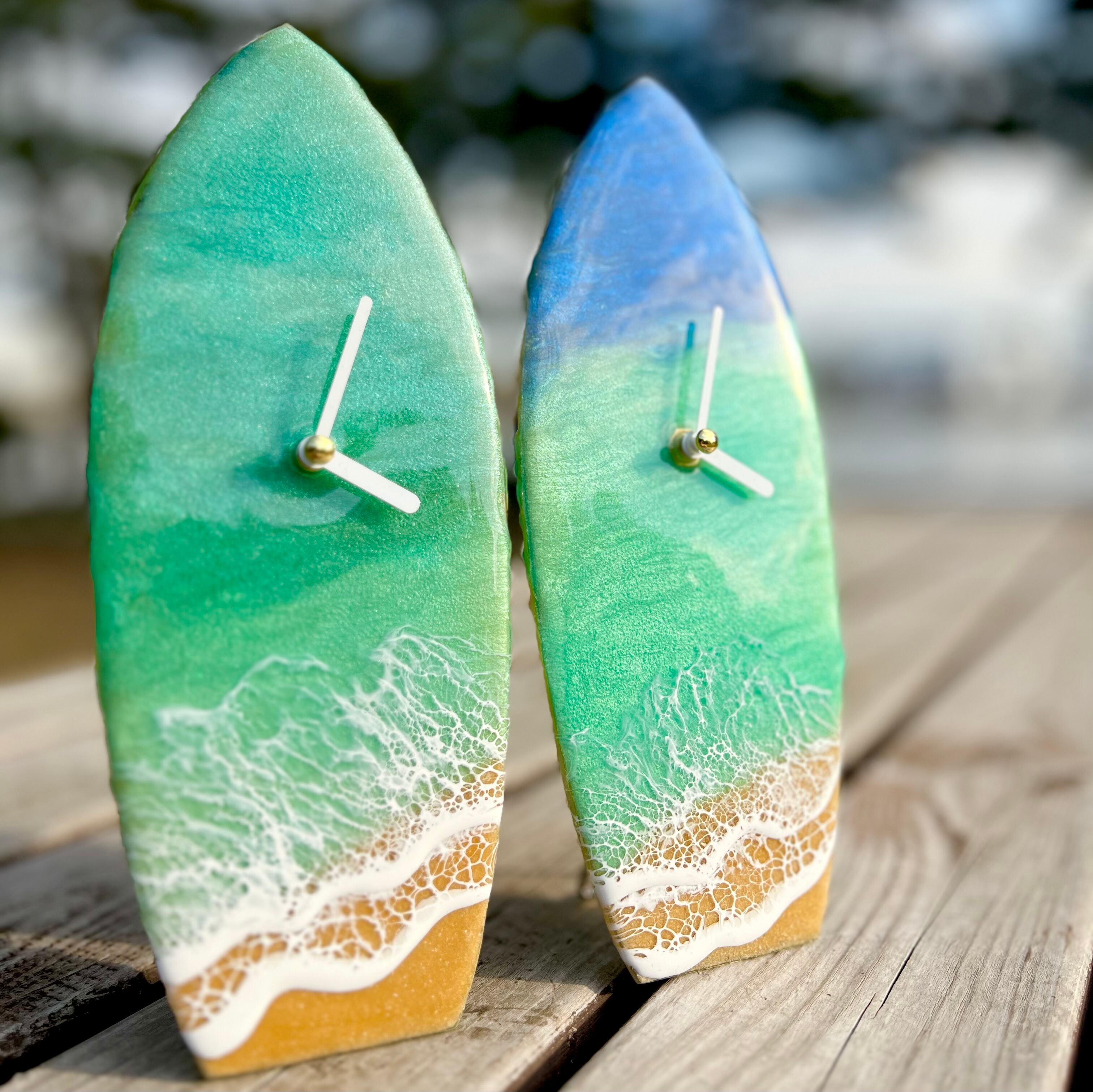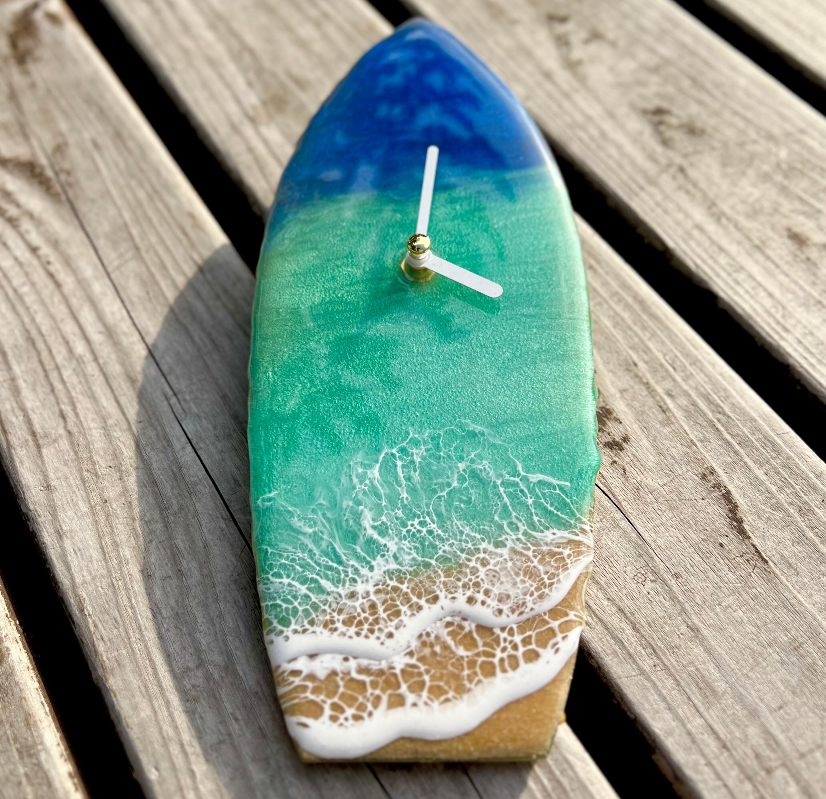 【①専用】海レジンアート時計34 時間を海と〜サーフボード〜